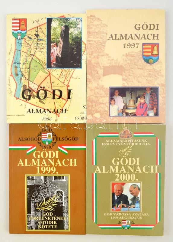 Gödi Almanach 4 száma: 1996, 1997, 1999, 2000. Kiadja Göd Város Önkorm... https://www.darabanth.com/de/306-Fernauktion/306.0/Bucher/Bucher-Reise-und-Ortgeschichte~500001/Godi-Almanach-4-szama-1996-1997-1999-2000-Kiadja-God-Varos-Onkormanyzata-Kiadoi-papirk~II1552644