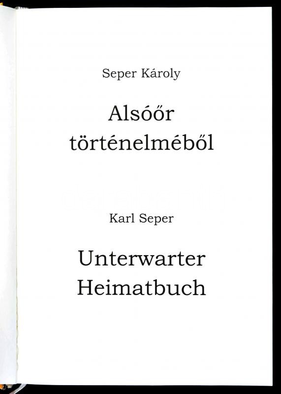 Seper Károly: Alsóőr történelméből/Unterwarter Heimatbuch. Alsóőr/Unterwart,2014, Magyar Média és Információs Központ/UMIZ. Kiadói kartonált papírkötés, magyar és német nyelven./ Hardback, in Hungarian and German language.