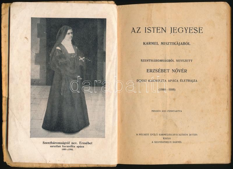 Az isten jegyese Karmel misztikájából: Szentháromságról nevezett Erzsé... https://www.darabanth.com/de/306-Fernauktion/306.0/Bucher/Bucher-Religion~500014/Az-isten-jegyese-Karmel-misztikajabol-Szentharomsagrol-nevezett-Erzsebet-nover-dijoni-karm~II1621139