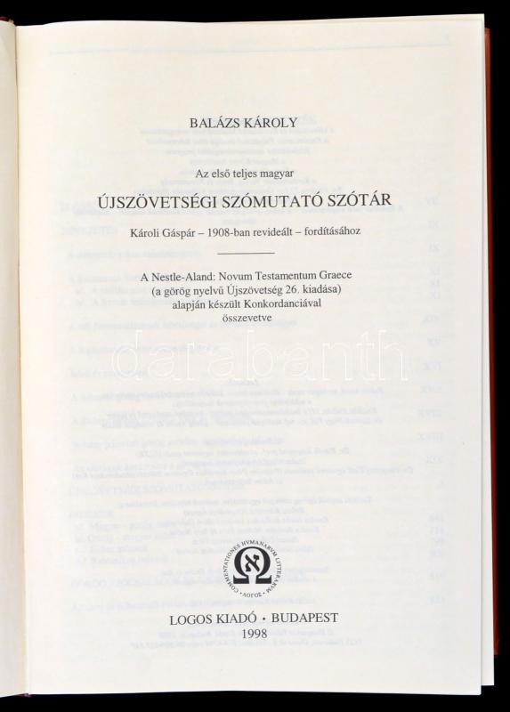 Balázs Károly: Újszövetségi szómutató szótár. Historia Diaspora II. Kötet. Bp.,1908, Logos. Kiadói egészvászon-kötés, kiadói papír védőborítóban. Jó állapotban.