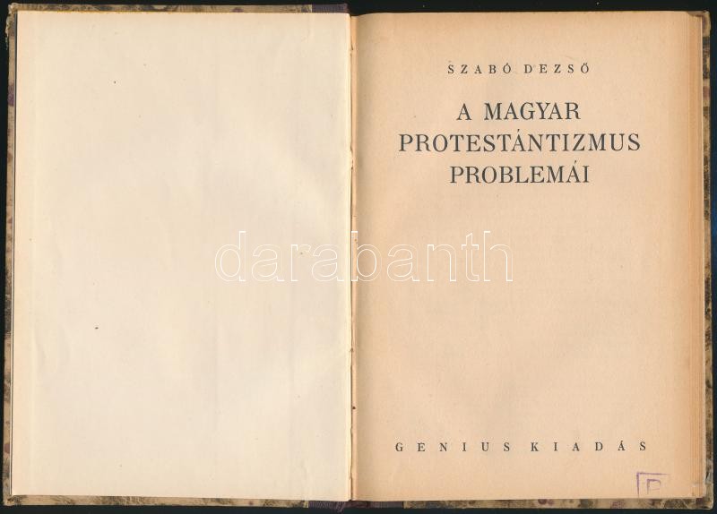 Szabó Dezső: A magyar protestantizmus problémái. Bp., [1926], Genius. ... https://www.darabanth.com/de/306-Fernauktion/306.0/Bucher/Bucher-Religion~500014/Szabo-Dezso-A-magyar-protestantizmus-problemai-Bp-1926-Genius-Korabeli-felvaszon-kotC3~II1651711