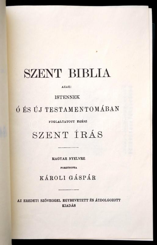 Szent Biblia. Ford.: Károli Gáspár. h. n., é. n., n. n. Műbőr kötésben... https://www.darabanth.com/de/306-Fernauktion/306.0/Bucher/Bucher-Religion~500014/Szent-Biblia-Ford-Karoli-Gaspar-h-n-e-n-n-n-Mubor-kotesben-jo-allapotban~II1638799