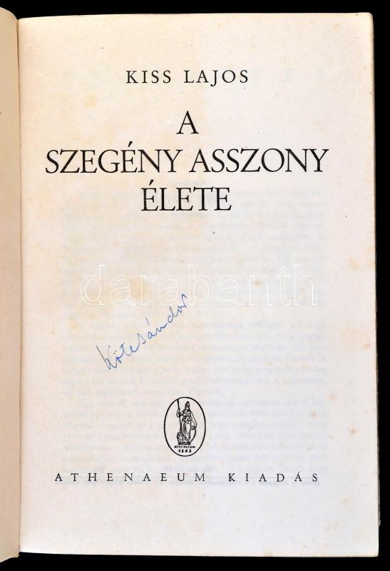 Kiss Lajos: Szegény asszony élete. Bp.,(1943), Athenaeum. Kiadói papír... https://www.darabanth.com/de/306-Fernauktion/306.0/Bucher/Bucher-Sozialwissenschaften~500010/Kiss-Lajos-Szegeny-asszony-elete-Bp-1943-Athenaeum-Kiadoi-papirkotesben-kiadoi-papir~II1654700
