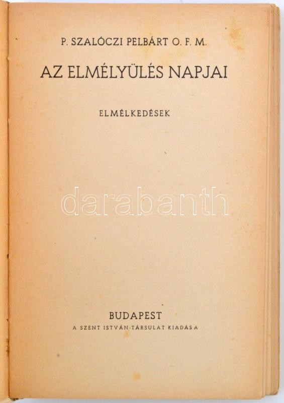 P. Szalóczy Pelbárt: Az elmélyülés napjai. Budapest, 1942, Szent Istvá... https://www.darabanth.com/de/306-Fernauktion/306.0/Bucher/Bucher-und-Dokumente-mit-gunstigem-Preis~500017/P-Szaloczy-Pelbart-Az-elmelyules-napjai-Budapest-1942-Szent-Istvan-Tarsulat-Kiadoi-pap~II1445373