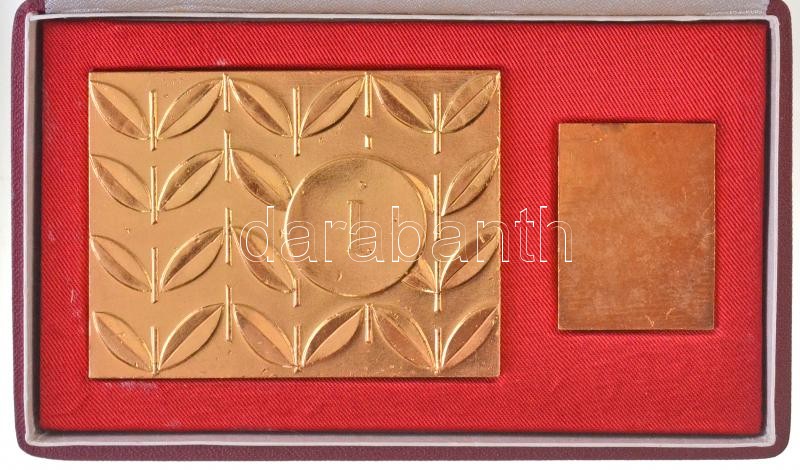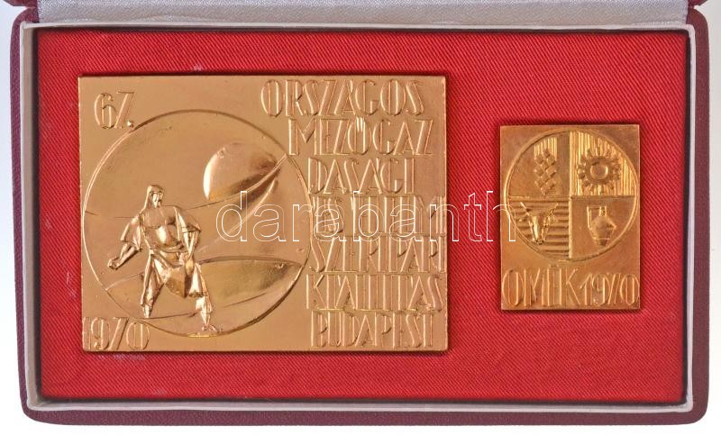 1970. "67. Országos Mezőgazdasági és Élelmiszeripari Kiállítás, Budapest - I. helyezés" aranyozott díjplakett tokban, miniatűr plakettel (60x79mm, 30x40mm) T:2