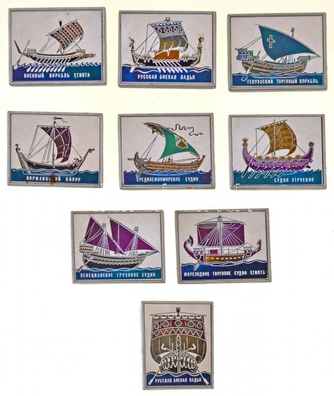 Szovjetunió DN 9db-os vegyes hajókat ábrázoló jelvény tétel (24x20mm) T:2 Soviet Union ND 9pcs of varios badges about ships (24x20mm) C:XF