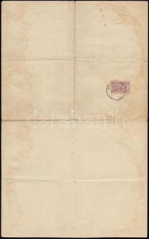 1941. "Magyar Koronás Bronzérem hadiszalagon és kardokkal" kitüntetés eredeti adományozói okirata "Magyar Királyi Honvédelmi Miniszter" feliratú domborpecséttel és a honvédelmi miniszter, vitéz Bartha Károly aláírásával ellátva. T:III szakadás a hajtás mentén