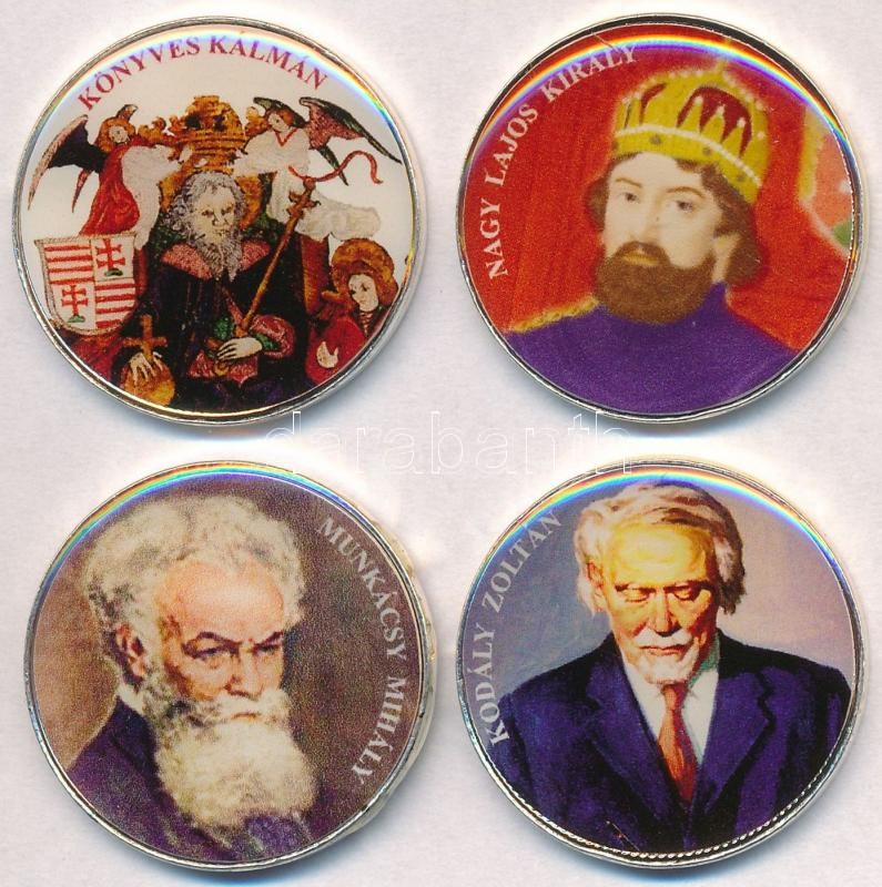 1992- 50Ft ezüstözött Cu-Ni (4xklf) "Nagy Magyarok / Könyves Kálmán, Nagy Lajos király, Munkácsy Mihály, Kodály Zoltán" multicolor, tanúsítványokkal T:2