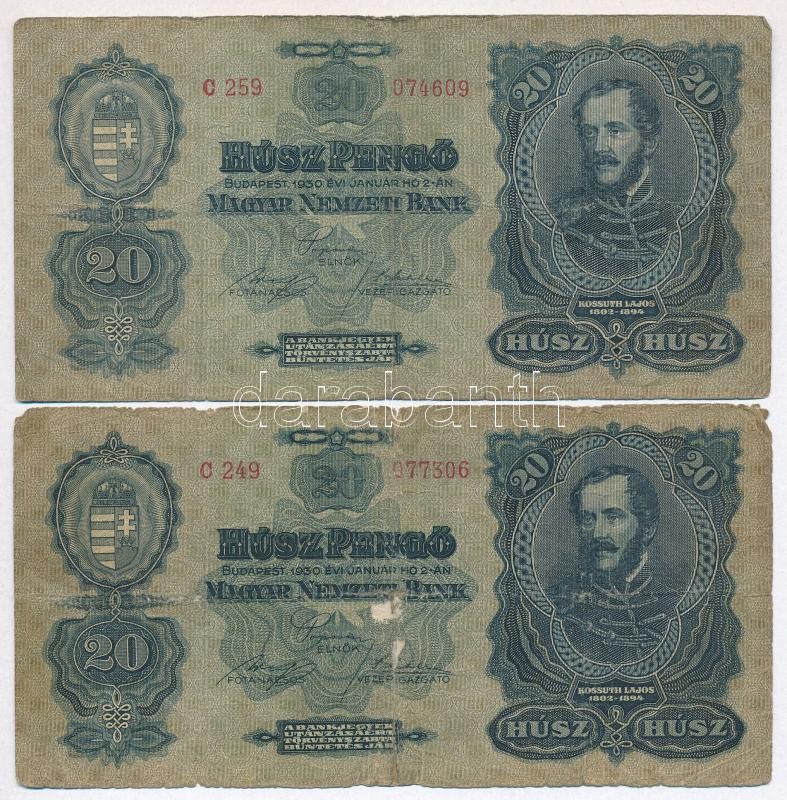 1930. 20P (4x) T:III,III-,IV egy ragasztott https://www.darabanth.com/de/306-Fernauktion/306.0/Numismatik/Ungarische-Banknoten~200007/1930-20P-4x-TIII-III-IV-egy-ragasztott~II1636578