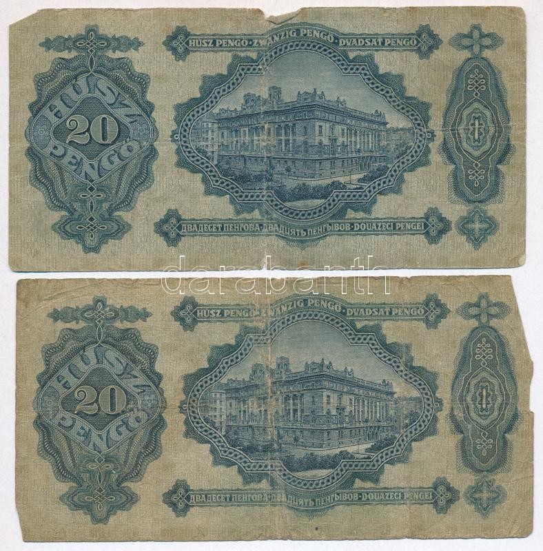 Beschreibung: 1930. 20P (4x) T:III,III-,IV egy ragasztott