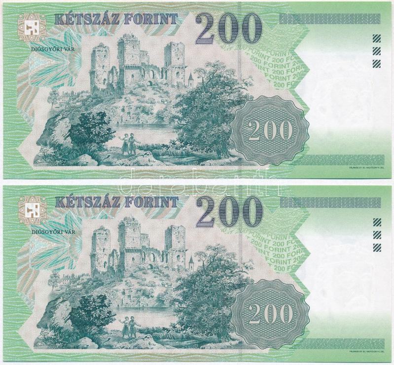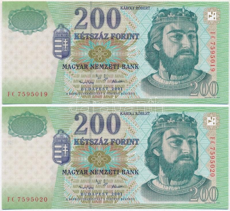2001. 200Ft "FC" (2x) sorszámkövetők T:I https://www.darabanth.com/de/306-Fernauktion/306.0/Numismatik/Ungarische-Banknoten~200007/2001-200Ft-FC-2x-sorszamkovetok-TI~II1652973