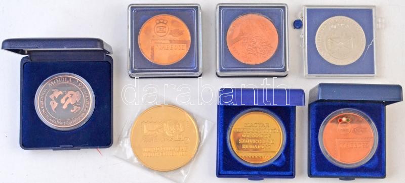 Beschreibung: 7db-os vegyes bélyegkiállÃtás témájú emlékérem, 1db külföldi, legtöbb saját tokban, közte 1994. "Magyarország Indonézia BélyegkiállÃtás / Magyar BélyeggyűjtÅ‘k Országos Szövetsége 67. Bélyegnap" Br emlékérem T:PP,2