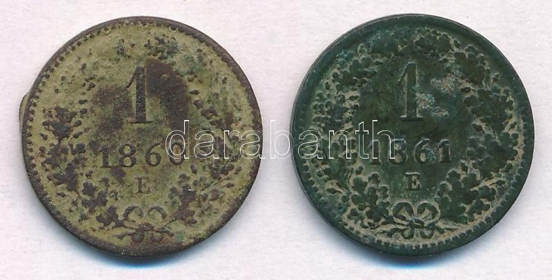 1860E 1kr Cu + 1861E 1kr Cu T:2-,3 patina https://www.darabanth.com/de/306-Fernauktion/306.0/Numismatik/Ungarische-Munzen-und-Munzen-mit-ungarischem-Munzzeichen~200008/1860E-1kr-Cu-plus-1861E-1kr-Cu-T2-3-patina~II1656872