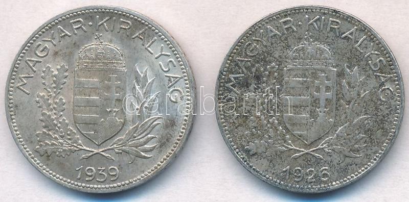 1926-1939. 1P Ag (2x) T:2,2- patina https://www.darabanth.com/de/306-Fernauktion/306.0/Numismatik/Ungarische-Munzen-und-Munzen-mit-ungarischem-Munzzeichen~200008/1926-1939-1P-Ag-2x-T2-2-patina~II1657092