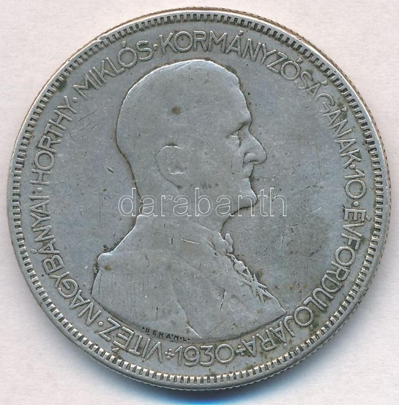 1930. 5P Ag "Horthy jobbra" T:2-,3 patina, ph.