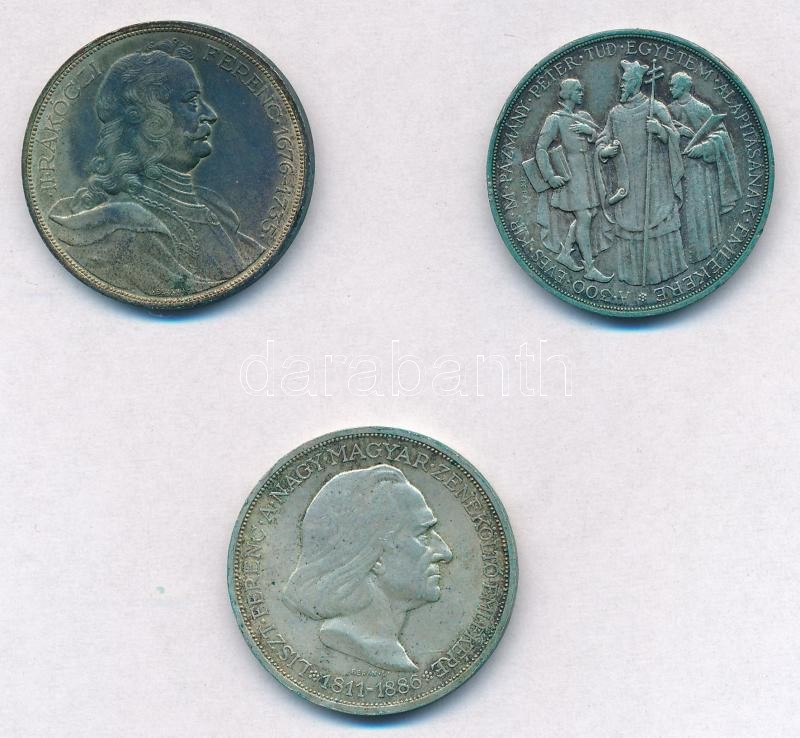 Beschreibung: 1935. 2P Ag "Pázmány" + 2P Ag "Rákóczi" + 1936. 2P Ag "Liszt Ferenc" T:1-,2 patina