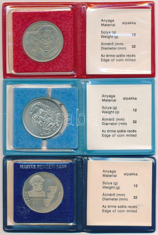 Beschreibung: 1983. 100Ft alpakka "Simon Bolivár" + 1983. 100Ft alpakka "Czóbel Béla" + 100Ft alpakka "Széchenyi István" mindegyik eredeti tokban, tanúsítvánnyal T:BU,1(PP)