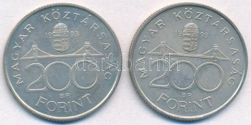 Beschreibung: 1993. 200Ft Ag "MNB" (2x) T:2