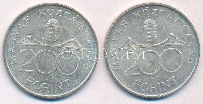 1994. 200Ft Ag "Deák" (2x) T:2 https://www.darabanth.com/de/306-Fernauktion/306.0/Numismatik/Ungarische-Munzen-und-Munzen-mit-ungarischem-Munzzeichen~200008/1994-200Ft-Ag-Deak-2x-T2~II1650666