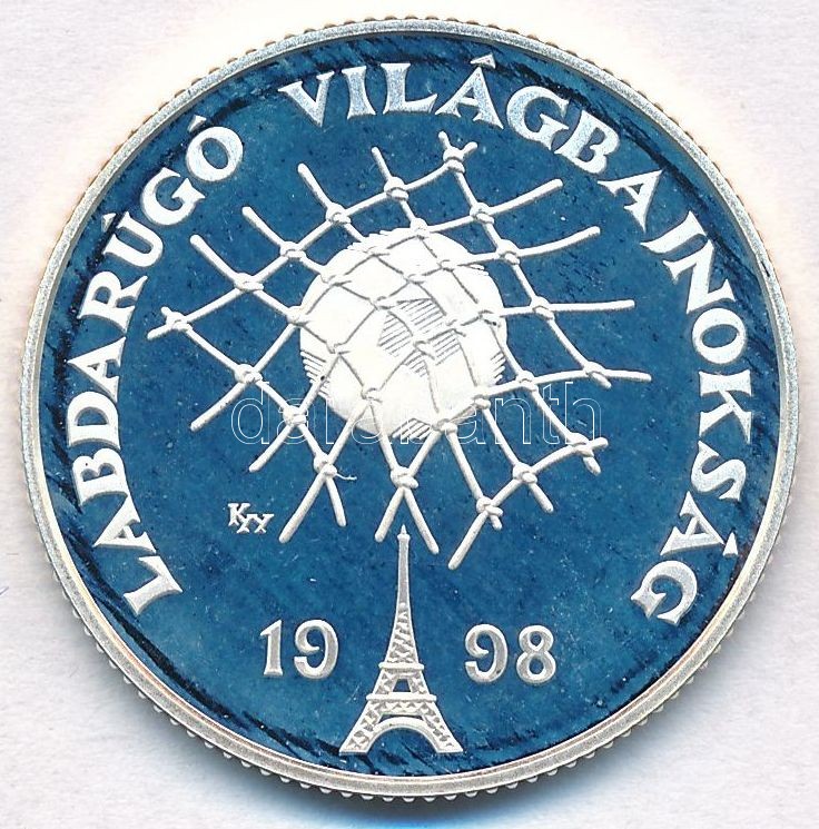 1998. 750Ft Ag "Labdarúgó VB" tanúsítvánnyal, tokban T:PP uj... https://www.darabanth.com/de/306-Fernauktion/306.0/Numismatik/Ungarische-Munzen-und-Munzen-mit-ungarischem-Munzzeichen~200008/1998-750Ft-Ag-Labdarugo-VB-tanusitvannyal-tokban-TPP-ujjlenyomatos---Adamo-EM148~II1654900