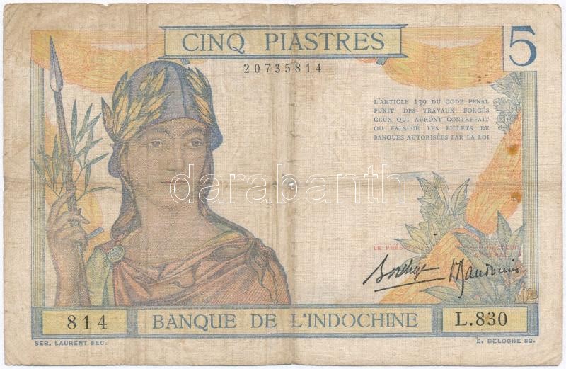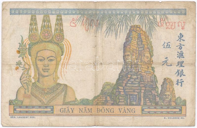 French Indo-China ... https://www.darabanth.com/de/306-Fernauktion/306.0/Numismatik/Weltweit-Banknoten~200012/Francia-Indokina-1946-5p-TIII-hajtas-menten-ly--French-Indo-China-1946-5-Piastres-CVG-hole-~II1604850