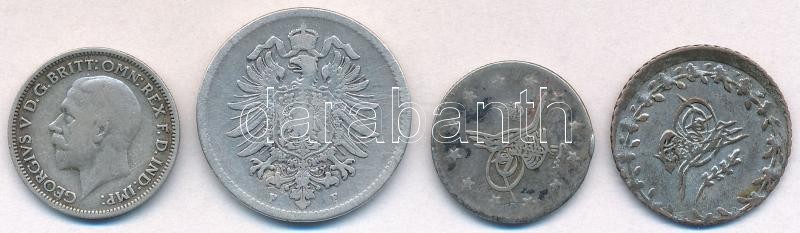 4db-os fémpénz tétel, közte Nagy-Britannia 1936. 6p Ag "V. György", Német Birodalom 1875F 1M Ag 'I. Vilmos" T:2,2-