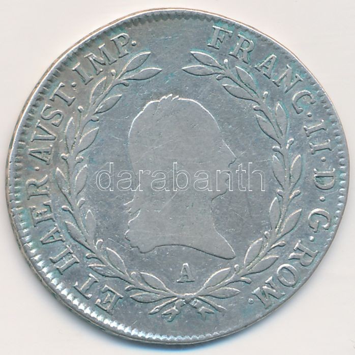 Austria 180... https://www.darabanth.com/de/306-Fernauktion/306.0/Numismatik/Weltweit-Munzen~200013/Ausztria-1806A-20kr-Ag-I-Ferenc-6-51g-T2---Austria-1806A-20-Kreuzer-Ag-Franz-I-6-51g-CVF-~II1640287