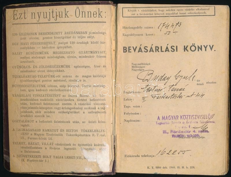 1940 Bevásárlási könyv Buday Gyula (?-?), a Képzőművészeti Főiskola ko... https://www.darabanth.com/de/307-Fernauktion/307.0/Andere-Sammelgebiete/Dokument~17/1940-Bevasarlasi-konyv-Buday-Gyula--a-Kepzomuveszeti-Foiskola-korabbi-testnevelo-ta~II1659012