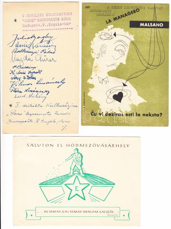 cca 1910-1950 15 db különféle eszperantó okmány, levelezőlap, stb. https://www.darabanth.com/de/307-Fernauktion/307.0/Andere-Sammelgebiete/Dokument~17/cca-1910-1950-15-db-kulonfele-eszperanto-okmany-levelezolap-stb~II1665430