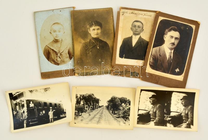 Beschreibung: cca 1915-1950 4 db fényképes vasúti utazási igazolvány és 4 db vasutas fotó