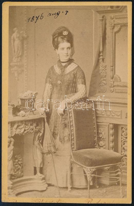 Beschreibung: 1876 Borsos és Varságh budapesti műtermében készült, vizitkártya méretű fénykép, 10x6,5 cm