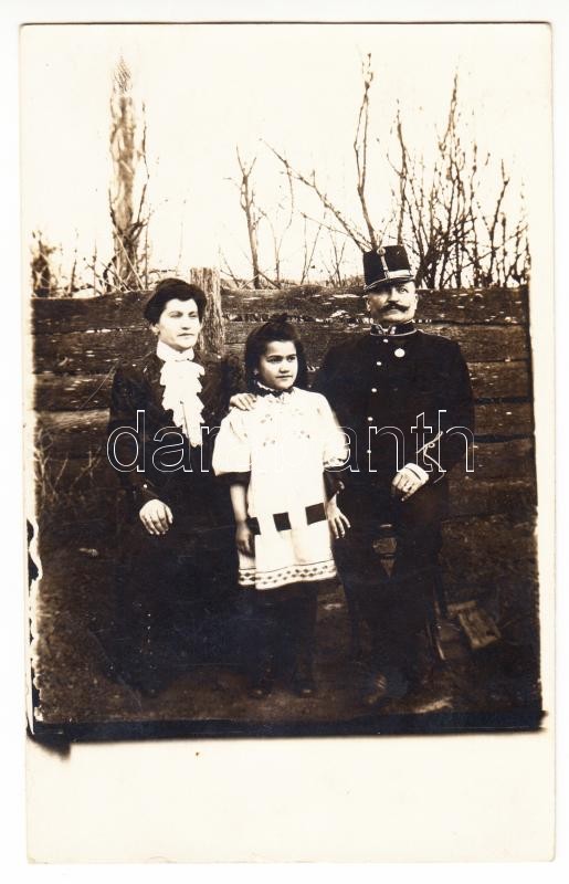 Beschreibung: 1909 Déva, pénzügyi biztos(?) és családja, fotó, hátulján feliratozva, 14×9 cm
