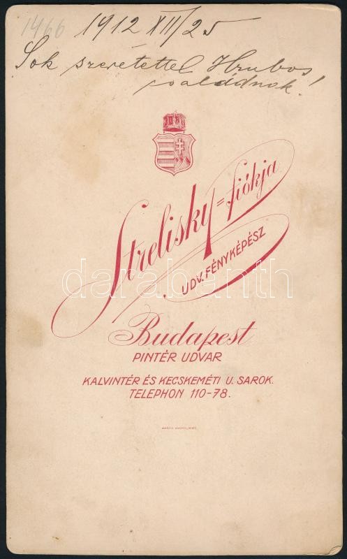 1912 Kabinetkép méretű Strelisky fotó ajándékozási sorokkal 1x17 cm https://www.darabanth.com/de/307-Fernauktion/307.0/Andere-Sammelgebiete/Foto~20/1912-Kabinetkep-meretu-Strelisky-foto-ajandekozasi-sorokkal-1x17-cm~II1658566