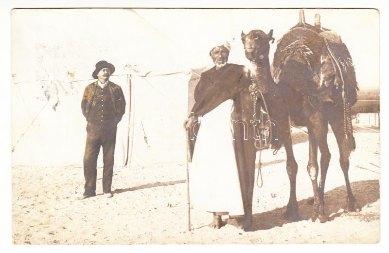 1920 Azonosítatlan magyar Afrika-kutató terepen, fotólap, Domokos Elek (?-?) korábbi Csongrád vármegyei számtiszt majd ellenőr felesége részére megküldve, 9×14 cm