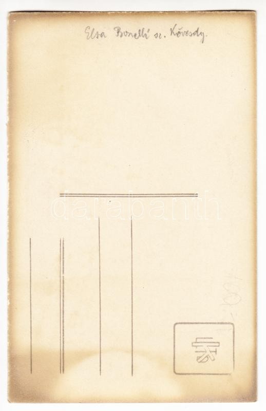 Beschreibung: 1926 Bonelli (szül. Kövesdy) Elza, fotólap, feliratozva, 14×9 cm