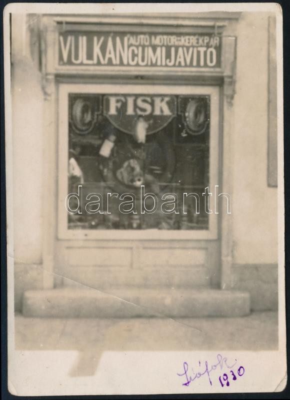 1930 Siófok gumijavító műhely 8x12 cm https://www.darabanth.com/de/307-Fernauktion/307.0/Andere-Sammelgebiete/Foto~20/1930-Siofok-gumijavito-muhely-8x12-cm~II1654363