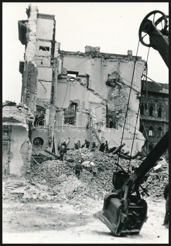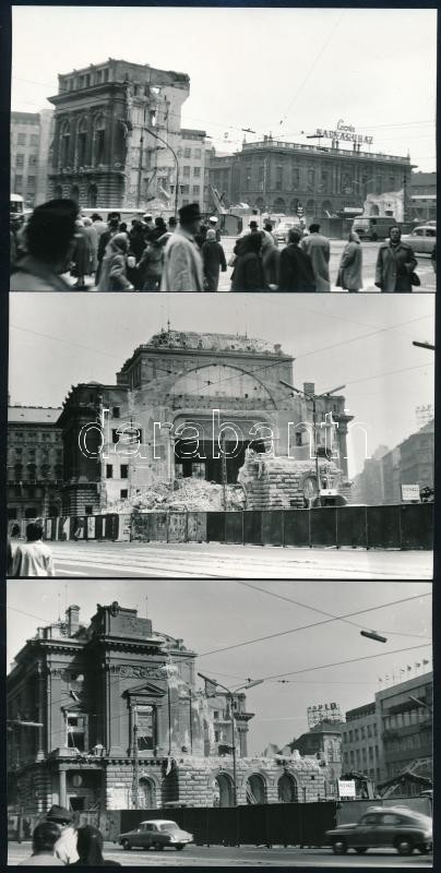 Beschreibung: Budapest, a 125 éves Nemzeti Színház társulata (1961) és a színház bontása (1965), 5 db vintage fotó, 9x13 cm és 18x24 cm