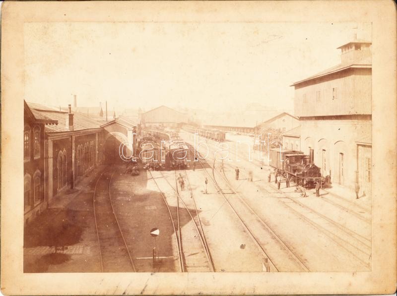 cca 1890 Budapest, Nyugati pályaudvar, gőzmozdony, vagonok, kartonra k... https://www.darabanth.com/de/307-Fernauktion/307.0/Andere-Sammelgebiete/Foto~20/cca-1890-Budapest-Nyugati-palyaudvar-gozmozdony-vagonok-kartonra-kasirozva-15x21-cm~II1665546