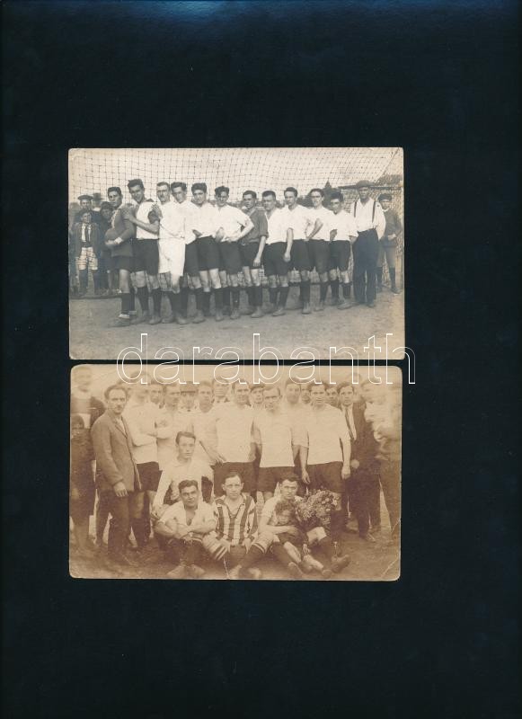 cca 1920-1930 Futballcsapatok, 2 db fotólap, 9x14 cm https://www.darabanth.com/de/307-Fernauktion/307.0/Andere-Sammelgebiete/Foto~20/cca-1920-1930-Futballcsapatok-2-db-fotolap-9x14-cm~II1662793