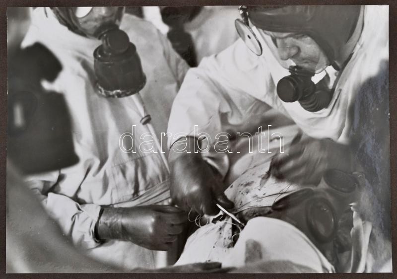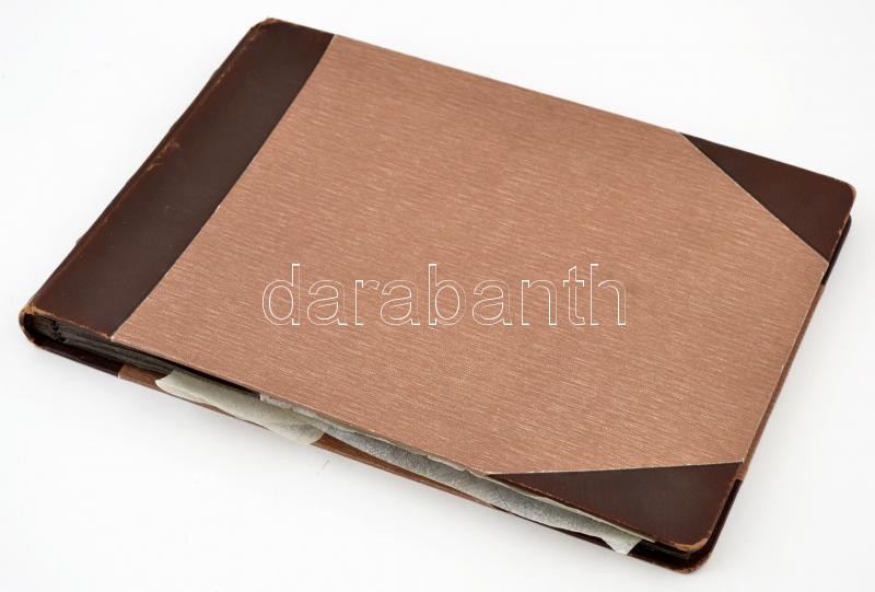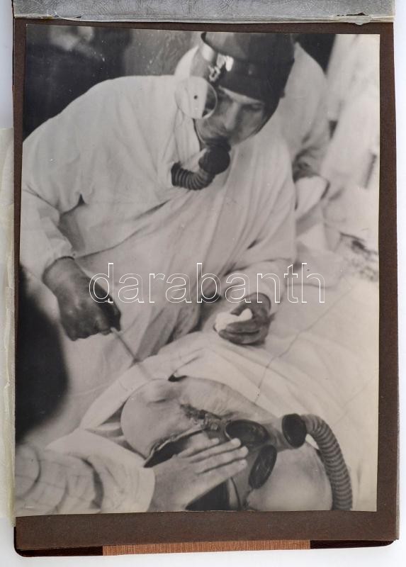 cca 1930 Krepuska Géza (1861-1949) orvos, egyetemi tanár, a modern magyar fülgyógyászat megalapítójának fotóalbuma, benne 13 db műtétekről készült képpel, képméret: 17x24 és 22,5x29,5 cm közti méretben
