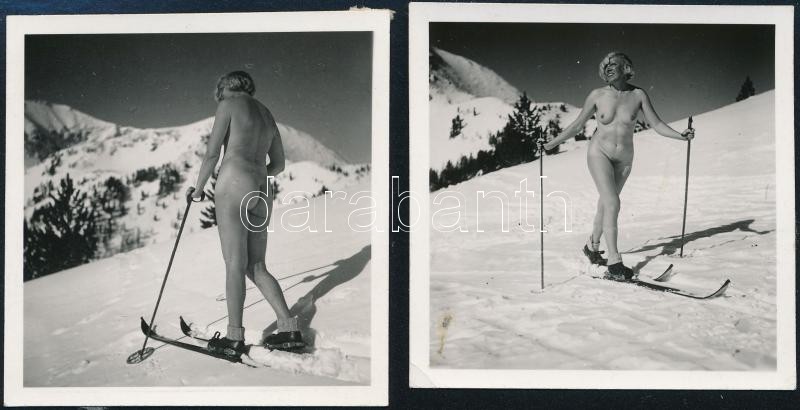Beschreibung: cca 1936 Síbakancs és más semmi...., 2 db jelzés nélküli vintage fotó dr. Csörgeő Tibor (1896-1968) hagyatékából, 6x6 cm