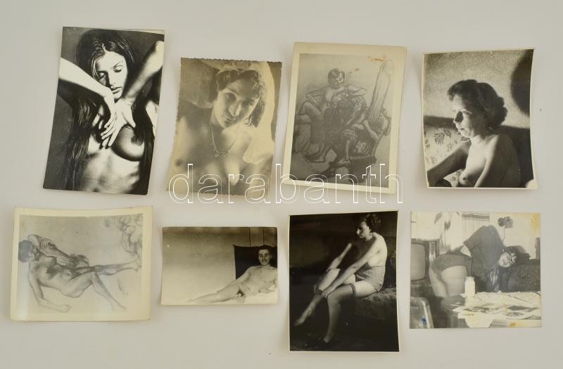 Beschreibung: cca 1950-1980 8 db erotikus és pornográf fotó és grafikáról készült fénykép, 6x9 és 14x9 cm közti méretben