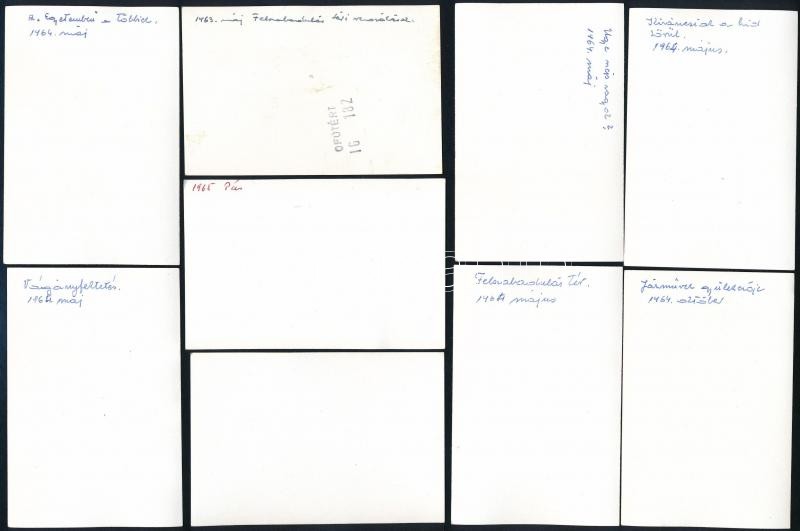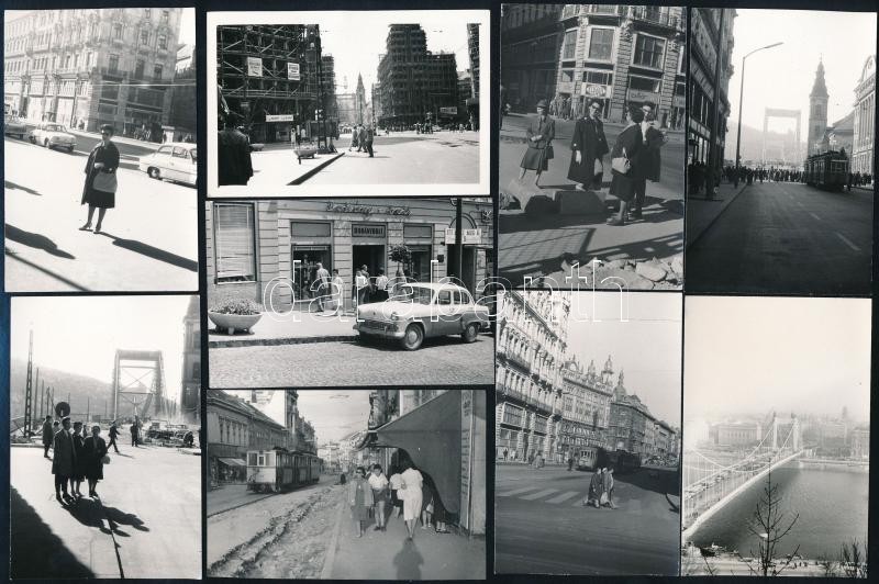 cca 1963-1964 Budapest, a Ferenciek tere környékén: utcaképek, vágányfektetés, renoválás, stb., összesen 15 db, nagy részük hátulján feliratozva, 6,5×10 cm