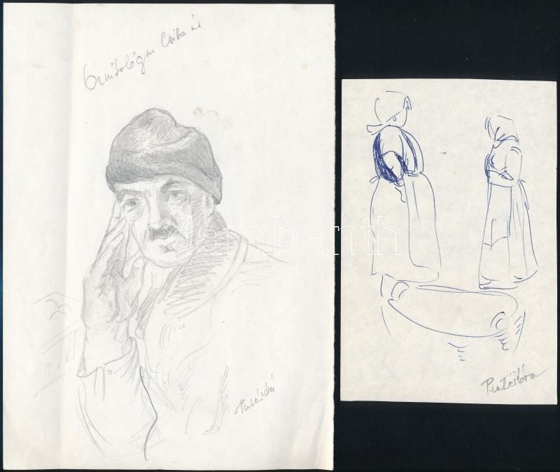 Beschreibung: Pintér Éva (1941-): 5 db különféle technikájú grafika, papír, jelzett, 14×9-21×14 cm