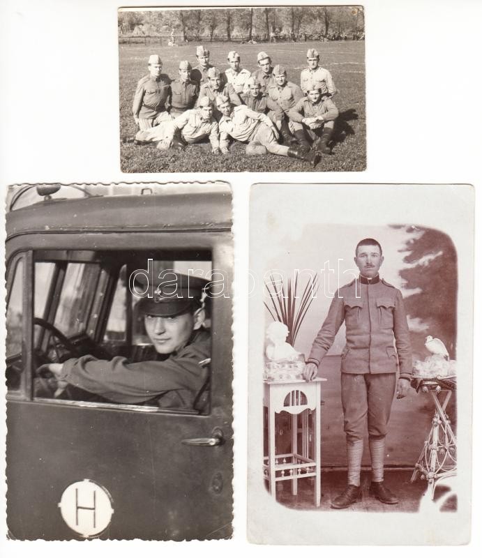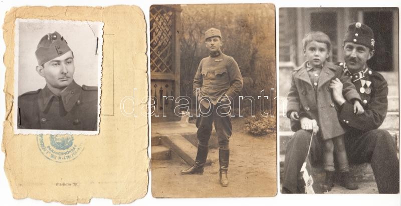 Beschreibung: cca 1915-1960 9 db különféle katonai fotó, egy részük hátulján feliratozva, különböző méretben