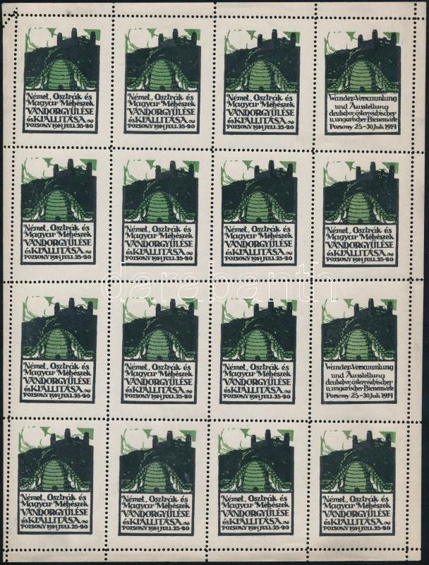 Beschreibung: 1914 Pozsonyi méhészeti vándorgyűlés és kiállítás 16 db-os levélzáró kisív benne 2 német és 14 magyar nyelvű levélzáró