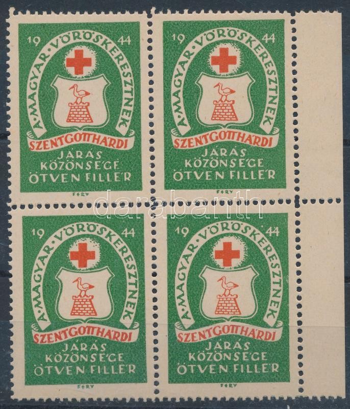 Beschreibung: 1944 Magyar Vöröskereszt javára 50f adománybélyeg 4-es tömbben