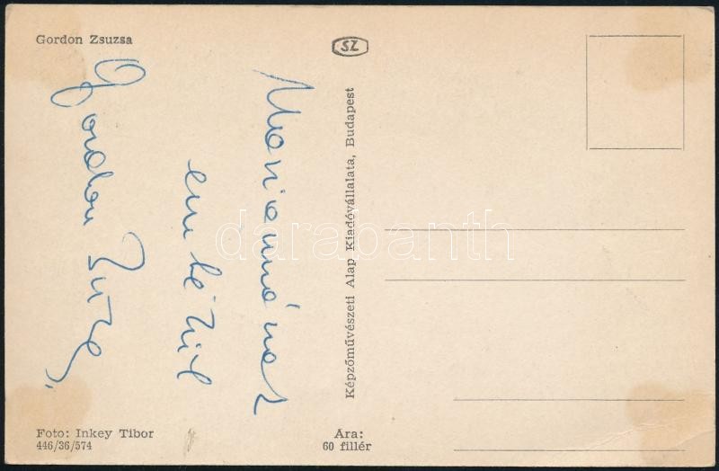 Beschreibung: Gordon Zsuzsa színművésznő aláírása és dedikálása őt ábrázoló képeslapon 9x14 cm