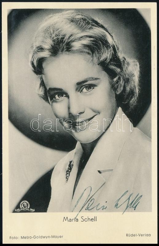 Maria Schell (1926-2005) osztrák/svájci színésznő aláírása az őt ábráz... https://www.darabanth.com/de/307-Fernauktion/307.0/Andere-Sammelgebiete/Signatur~19/Maria-Schell-1926-2005-osztraksvajci-szineszno-alairasa-az-ot-abrazolo-fotolapon-a~II1663927