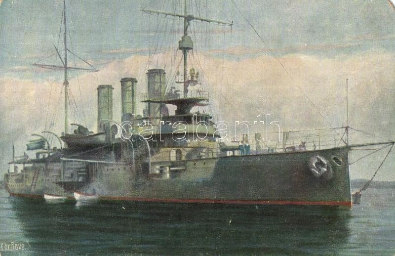 SMS Kaiser Karl VI. az Osztrák-Magyar Monarchia haditengerészetének VI. Károly-osztályú páncélos cirkálója / K.u.K. Kriegsmarine Panzerkreuzer, Austro-Hungarian Navy armored cruiser. Marine-Galerire Karte Nr. 224. s: Chr. Rave (EM)